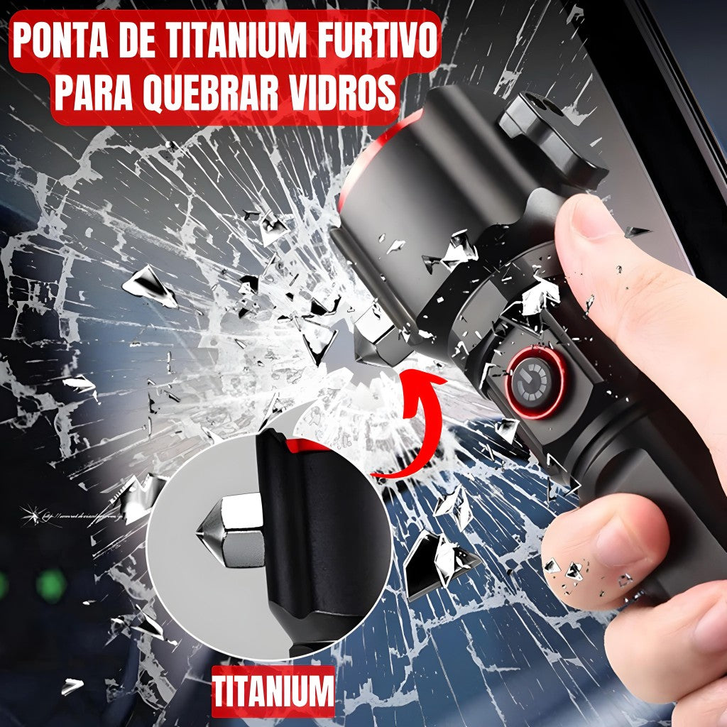 O LED frontal permite variar entre luz alta, luz baixa e piscando, enquanto o LED lateral oferece ainda mais versatilidade, incluindo também luz vermelha (red light). O corta-cinto embutido facilita o transporte, e o quebra-vidro garante uma solução rápida e eficaz em situações críticas. Pode ser utilizada como power bank para celulares.