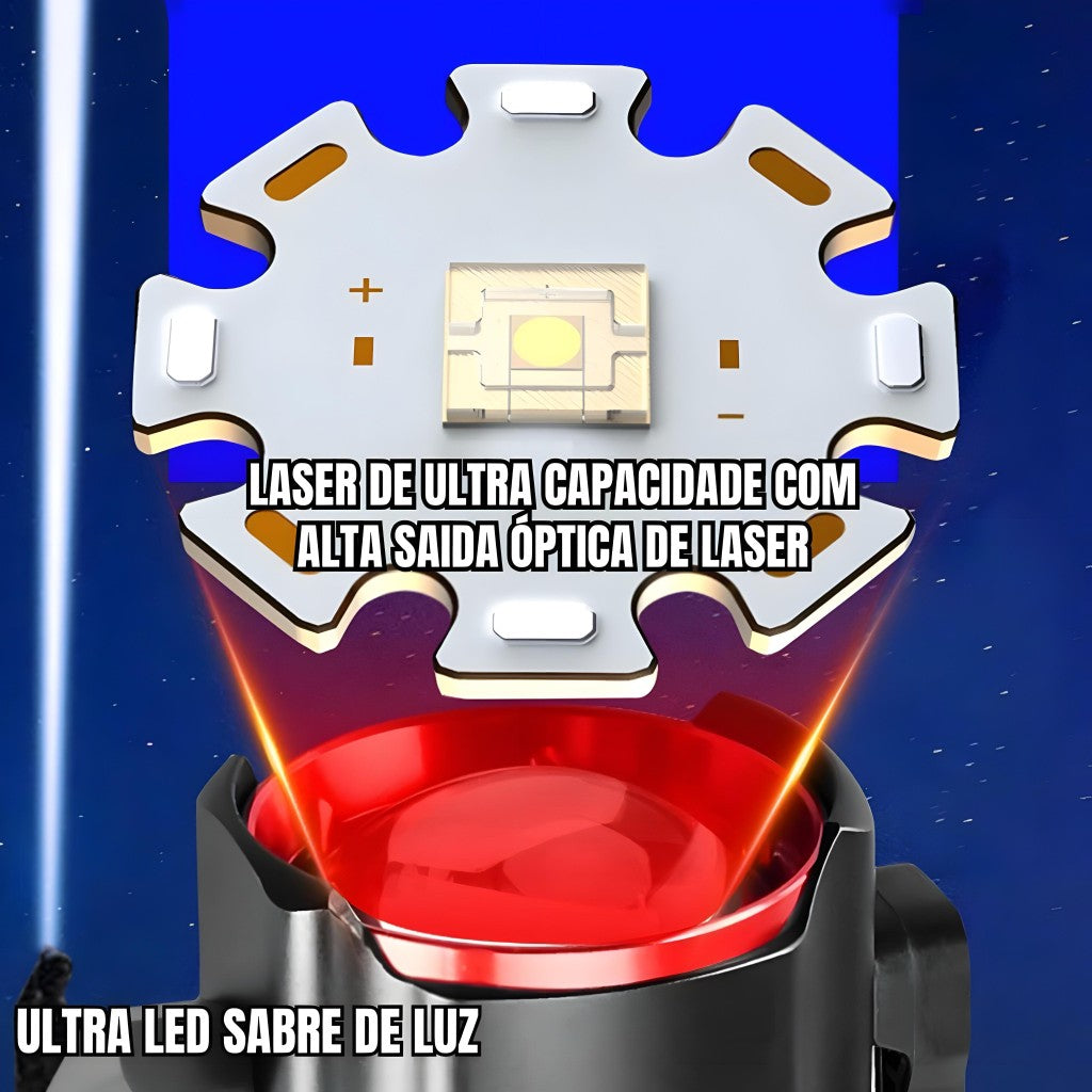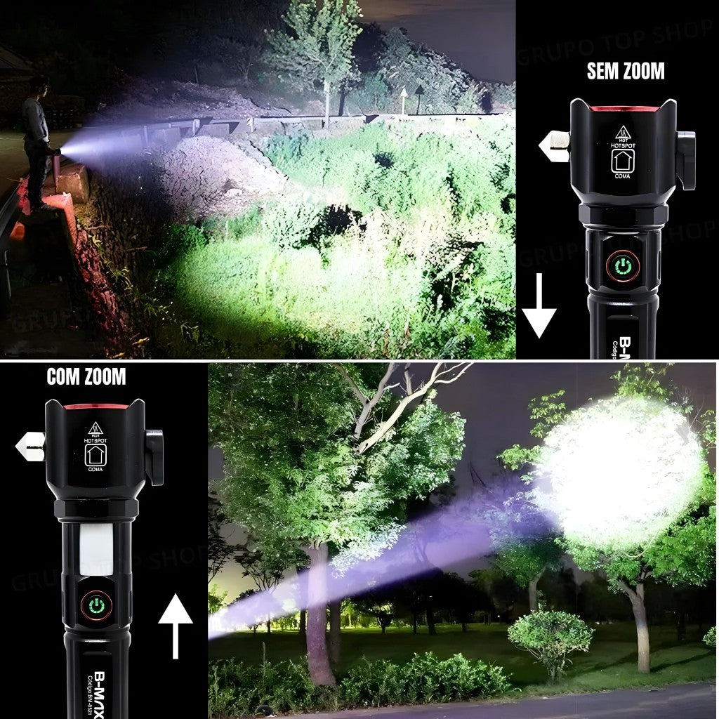 Além de potente, esta lanterna é resistente à água (não submersível), projetada com uma estrutura robusta em liga de magnésio para durabilidade superior. Com foco ajustável por zoom telescópico e alimentada por baterias de lítio recarregáveis, você terá energia suficiente para iluminar qualquer caminho.