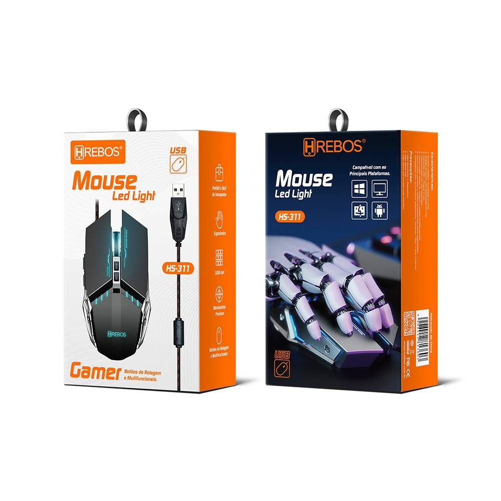 Mouse Gamer Com Fio USB 7 Botões LED RGB Hrebos HS-311