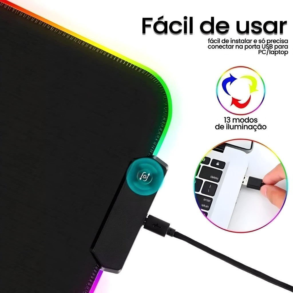 Os 13 modos de iluminação vão deixar seu cantinho de jogos ainda mais estiloso! Além disso, a borda iluminada dá um toque de sofisticação e imersão, ideal para os gamers mais exigentes. Agora será muito mais confortável e preciso movimentar seu mouse durante as jogadas intensas.